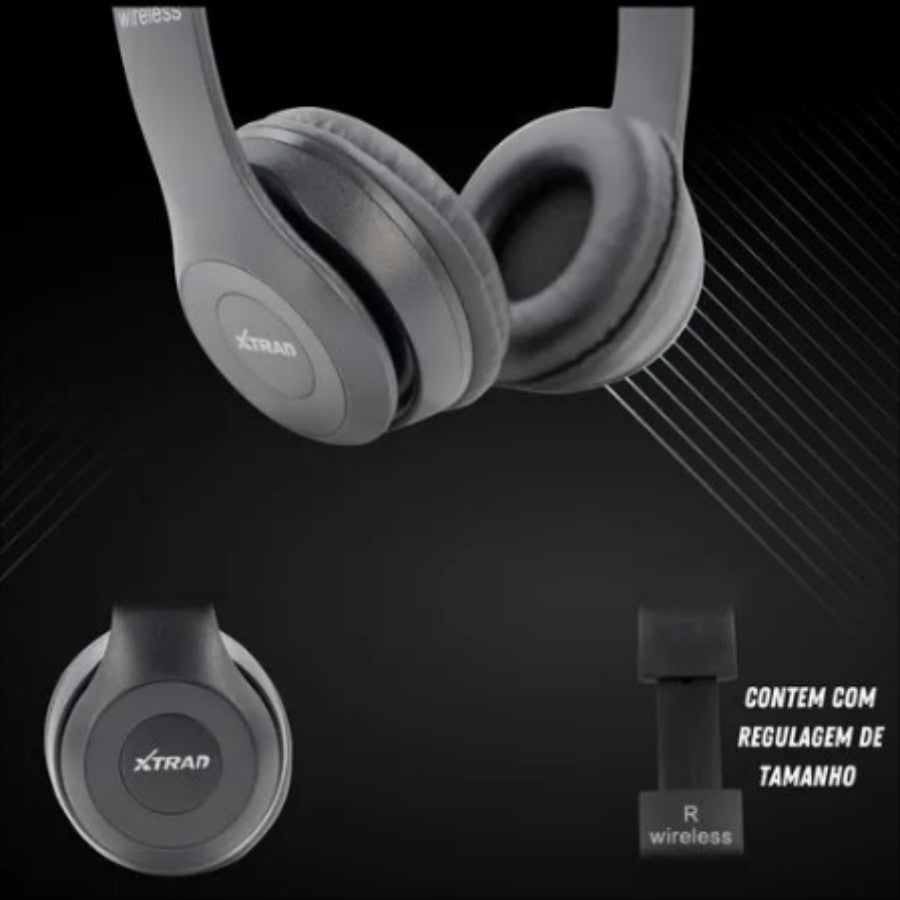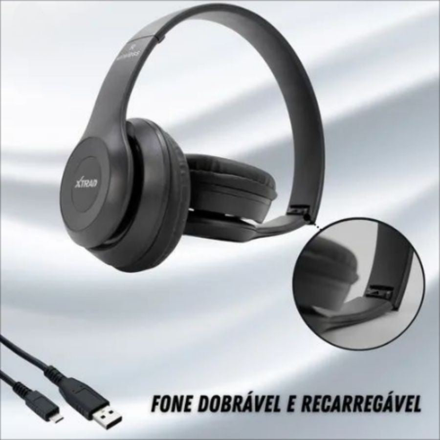 Fone de Ouvido Sem Fio LC-815 Extra Bass Bluetooth marca XTRAD - Com microfone - Dobrável; - Almofada Macia; - Alcance: < 10m - Wireless V5.0; - Bluetooth; - Rádio FM; - Bateria Polímero de lítio recarregável; - Capacidade da Bateria: 800mAh; - Tempo de Uso: Até 4 horas; - Botões; - Modelo: P47; - Carregador USB.